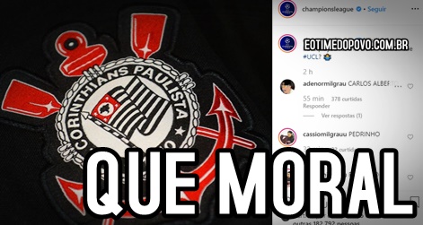 O perfil oficial da Liga dos Campeões da Europa agitou a torcida do Corinthians neste domingo (17) e até mesmo os perfis oficiais do Time do Povo nas redes sociais. Através do Instagram, a seguinte pergunta foi direcionada aos torcedores: Which players have played for this club AND won the #UCL? (Quais jogadores desse clube ganharam a Champions League?)