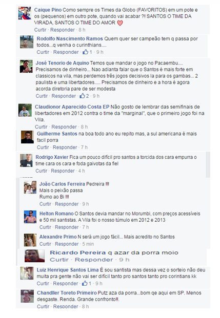 A decisão entre Santos e Corinthians na Copa do Brasil já está repercutindo no mundo do futebol. A torcida do time praiano, não gostou nada de saber que o adversário seria o Timão e lamentou nas redes sociais.